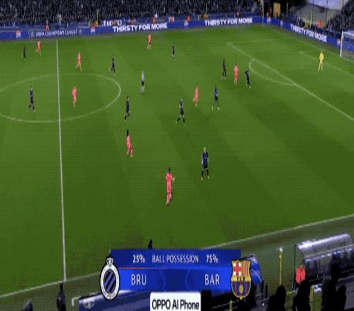 巴萨气势如虹,杀得兴起,10名球员都压过半场。第16分钟,布鲁日打出经典的快速反击,从本方禁区大脚解围到进球,全部都是一脚传球。