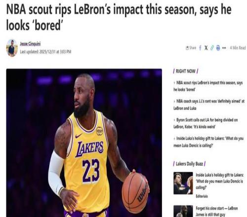 美媒RG.org邀请多位NBA业内人士谈论本赛季湖人队与詹姆斯的表现,其中匿名球探公开嘲讽詹姆斯。