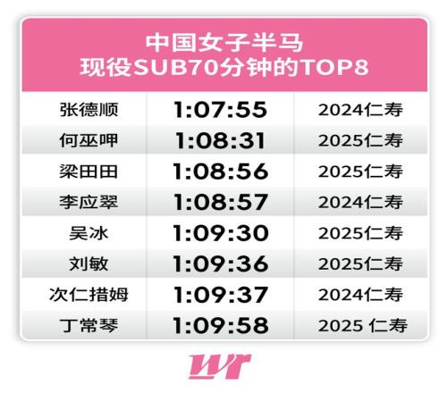 目前,国内女子半马打开70分大关的选手共有8位,此番仁寿,榜单上的一半女将都将聚首仁寿。